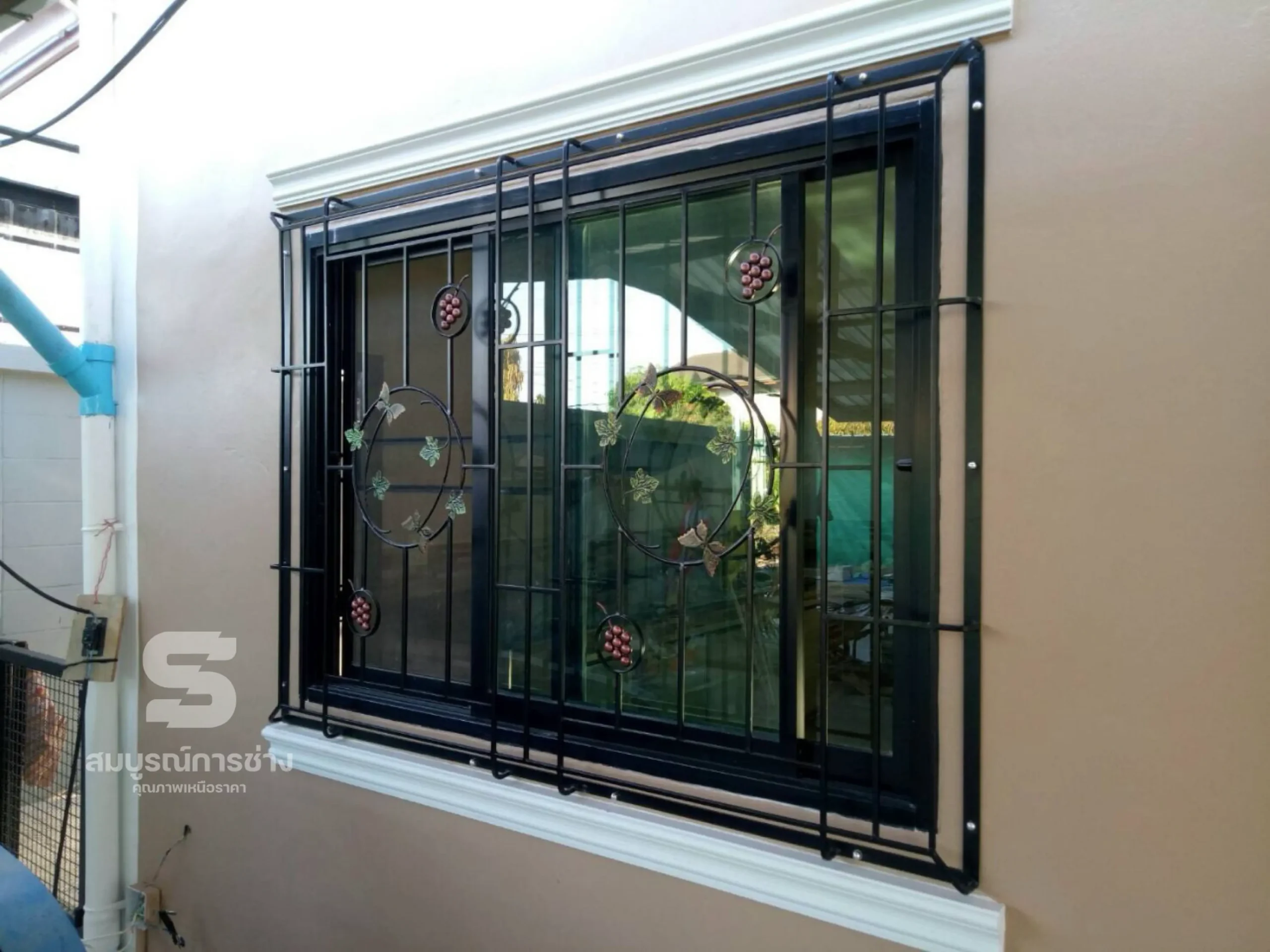 กระจกอลูมิเนียม หน้าต่างเหล็กดัด ลายผีเสื้อ